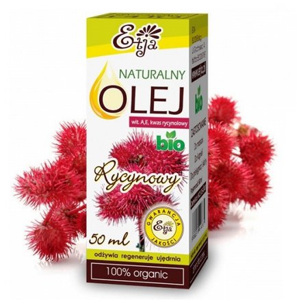 Tłoczny na zimno olej z nasion rącznika pospolitego (Rycyny). Olej rycynowy jest bogaty w kwasy tłuszczowe, witaminy A, E oraz kwas rycynolowy. Posiada zbawienne działanie na włosy, brwi, rzęsy i paznokcie. Odbudowuję strukturę włosa, zapobiega ich wypadaniu, rozdwajaniu oraz wysuszeniu. Przywraca im niezwykłą gęstość i naturalny blask. Okłady z oleju rycynowego są najczęściej polecanym środkiem na łupież. Doskonały do każdego rodzaju skóry.