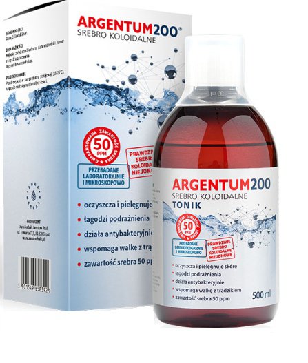 Argentum200 Srebro Koloidalne to kosmetyk o wysokiej zawartości czystego srebra koloidalnego na bazie najczystszej demineralizowanej wody. Dzięki wysokiej i potwierdzonej zawartości oraz odpowiedniej wielkości cząsteczek srebra działa na skórę! To znakomity tonik odpowiedni dla każdego typu cery. Odświeża i oczyszcza. Produkt przebadany dermatologicznie oraz mikroskopowo!