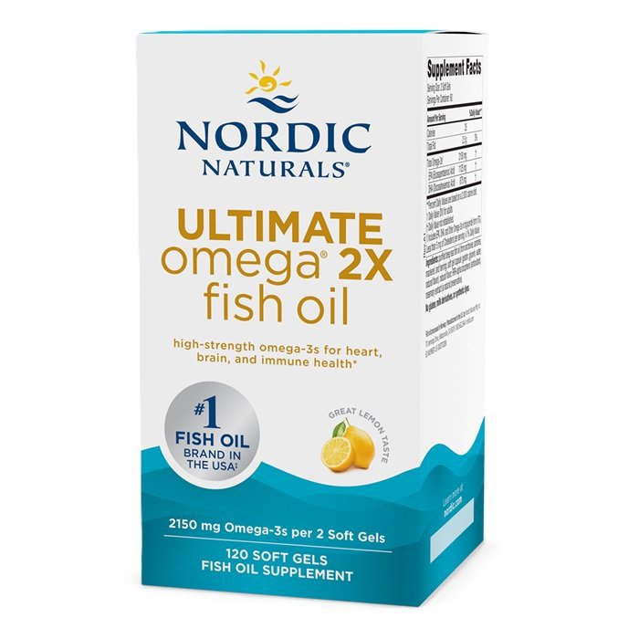 Nordic Naturals to marka ciesząca się dużym uznaniem zadowolonych klientów, która specjalizuje się w produkcji nowoczesnych, dobrze przyswajalnych suplementów z omega 3. Nordic Naturals Ultimate Omega 2X, 2150 mg Cytryna to produkt przyjemny w suplementacji o naturalnym aromacie cytryny. Miękkie kapsułki mogą ułatwić suplementację. Czy wiesz, że Ultimate Omega 2X, 2150 mg zawiera olej rybny omega-3 o najwyższym stężeniu w formie reestryfikowanych trójglicerydów, który wspiera lepszą absorpcję i korzyści dla Twojego organizmu. W suplemencie diety Nordic Naturals znajdziesz 2000 mg EPA i DHA w dwóch miękkich żelowych kapsułkach, jako dawce dziennej. Wysokiej jakości koncentrat Omega 3 zaspokaja szeroki zakres potrzeb żywieniowych i pomaga wspierać zdrowie mózgu, funkcjonowanie układu odpornościowego, prawidłową ruchomość stawów i zdrowe układu sercowo-naczyniowego.