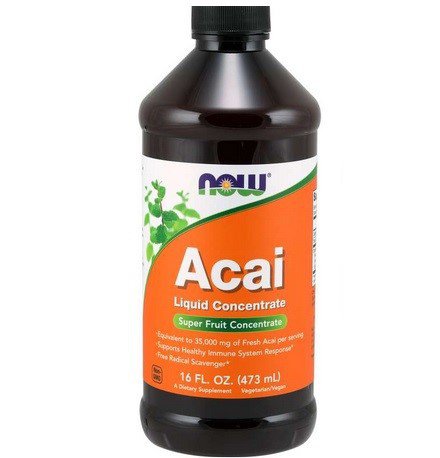 Ciesząca się uznaniem marka NOW FOODS poleca nowoczesny suplement diety Acai Liquid Concentrate 473ml w postaci płynu co ułatwia jego aplikację. Jagoda acai jest cenna dla zdrowia człowieka ze względu na to, że posiada wartościowe składniki odżywcze takie jak między innymi: żelazo, kwasy omega 6 i 9, witaminy z grupy B, witaminy rozpuszczalne w tłuszczach A, D,E i K, witaminę C, wapń, potas, fosfor, miedź, cynk, magnez. Jest też źródłem błonnika pokarmowego, przez co między innymi może wspomóc proces odchudzania.