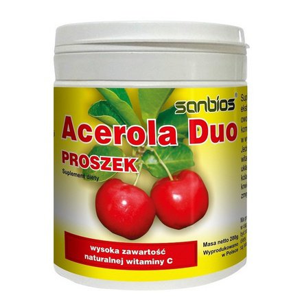 Acerola Duo PROSZEK to połączenie ekstraktu z brazylijskiej aceroli z proszkiem z tego samego owocu w proporcji 70% do 30%. Acerola wpływa korzystnie na wsparcie układu odpornościowego, układu nerwowego, układu sercowo-naczyniowego, wspiera zdrowie kobiet o obfitych miesiączkach czy może pomóc regulować poziom cukru we krwi osób chorych na cukrzycę typu 2. Czy wykazuje silne działanie antyoksydacyjne opóźniając proces starzenia i działając antynowotworowo.
