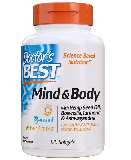 DOCTOR'S BEST ciało i umysł - Mind and Body to innowacyjny suplement diety, który wspiera zdrowie człowieka w sposób holistyczny, wspierając zarówno ciało jak i umysł. Specjaliści DOCTOR’S BEST stworzyli wyjątkową kompleksową formułę, która składa się z naturalnych składników znanych i jest znana ze swojego prozdrowotnego działania. W naturalnym, efektywnie działającym suplemencie diety Doctor's Best zawarto: olej z nasion konopi, kurkuminę, ashwagandhę, boswellie, cynk oraz oczyszczony ekstrakt z piperyny.