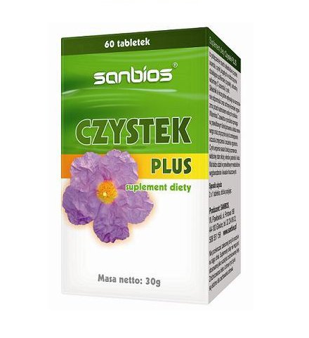 CZYSTEK PLUS to połączenie trzech składników: czystka, aceroli i cynku, które mają dobroczynny wpływ na organizm człowieka. Warto sięgnąć po ten suplement diety w stanach osłabienia oraz obniżenia odporności, którą wspiera czystek. Eksperci SANBIOS polecają czystek także w zaburzeniach funkcjonowania układu nerwowego, na który roślina ta ma dobroczynny wpływ. SANBIOS Czystek plus warto suplementować w momencie kiedy mamy osłabione włosy, skórę i paznokcie, które wzmacnia cynk synergicznie połączony z czystkiem.