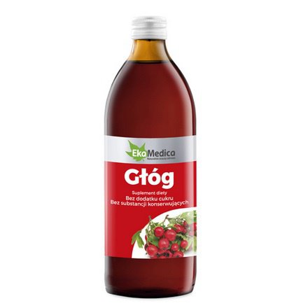 Suplement diety firmy EKA MEDICA Głóg sok 99,7% 500ml(5%) to dobrze przyswajalny preparat, który dzięki przyjemnej formie jest prosty i "smaczny" w aplikacji. Sok z głogu warto polecić: seniorom, osobom osłabionym, osobom z obniżona odpornością, ludziom miewającym problemy trawienne czy schorzenia układu krążenia i układu sercowo naczyniowego.