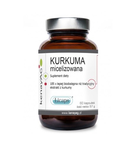 Nowoczesny suplement diety KENAY AG Kurkuma micelizowana Licaps zawiera kurkumę, która dzięki technologii solubilizacji jest stabilną, wysoko biodostępna, a która zachowuje swoje cenne właściwości prozdrowotne przy ściśle zoptymalizowanej dawce. Wysoka przyswajalność suplementu diety przekłada się na pozostanie w organizmie człowieka dawki substancji aktywnej, takiej aby w jak największym stopniu wspomóc organizm w prawidłowym funkcjonowaniu.