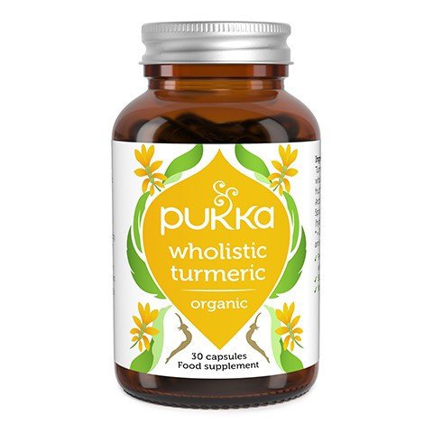 W 1 kapsułce Pukka Wholistic Turmeric znajduję się 77,5 mg kurkuminoidów.