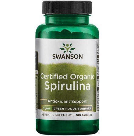 SWANSON Spirulina certyfikowana to wysokiej jakości dobrze przyswajalny suplement diety, który zawiera w swym składzie organiczna certyfikowaną spirulinę. Spirulina jest hodowana w ekologicznych hodowlach najczęściej na terenie Azji i Afryce. Jest to bardzo ceniona alga, jedna z najstarszych znanych człowiekowi. Była wykorzystywana w medycynie naturalnej przez Azteków. Do najważniejszych właściwości Spiruliny zaliczyć można: naturalne oczyszczenie organizmu, wsparcie układu nerwowego, wsparcie sił witalnych, wsparcie procesu odchudzania, działanie przeciwwirusowe, wsparcie leczenie alergii, wsparcie profilaktyki antynowotworowej czy ochrona organizmu przed stresem oksydacyjnym.