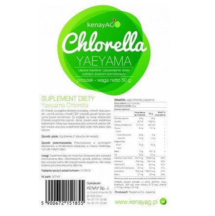 Chlorella jest ceniona za dobroczynny wpływ na organizm człowieka. W skład chlorelli wchodzi białko roślinne, chlorofil, witaminy z grupy B, witaminy i minerały oraz aminokwasy. KENAY AG ChlorellaYaeYama proszek 50g w postaci proszku można polecić, seniorom, sportowcom, osobom mieszkającym w dużych miastach, ludziom z problemem alkoholowym, osobom pragnącym chronić organizm przed stresem oksydacyjnym.