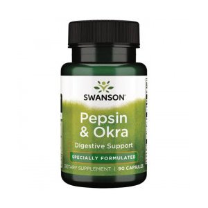 Swanson Okra Pepsin to nowoczesny i szybko działający suplement diety wspierający proces trawienia. Jeśli miewasz tendencje do nieprzyjemnych objawów niestrawności takich jak: gazy, uczucie pełności, wzdęcia czy odbijanie, to wysokiej jakości preparat Swanson Okra Pepsin jest idealnym rozwiązaniem wsparcia zdrowia układu pokarmowego dla Ciebie. Warto również zaznaczyć, że osoby starsze, szczególnie z przypadłością leniwych jelit, też mogą wspierać dietę tym wysoce przyswajalnym dla organizmu preparatem.
