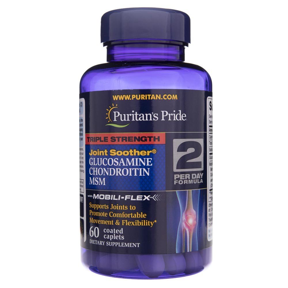 Suplement diety Puritan's Pride Glukozamina Chondroityna MSM to produkt stosowany w celu jak najdłuższego zachowania prawidłowego funkcjonowania stawów. Glukozamina i chondroityna przyczyniają się do zwiększenia ruchowości stawów ich elastyczności oraz wytrzymałości. Dlatego też suplement ten poleca się osobom starszym albo narażonym na większe obciążenia stawów np. w wyniku specyfiki pracy lub podejmowanej aktywności fizycznej.