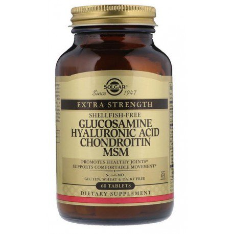 Solgar Glukozamina, Kwas hialuronowy, Chondroityna i MSM to innowacyjny suplement diety łączący w sobie synergiczne działanie: MSM - siarki organicznej, glukozaminy, chondroityna, i kwasu hialuronowego. Warto zaznaczyć, że glukozamina i chondroityna stanowią ważny składnik chrząstki stawowej. MSM zapewnia naturalne, biodostępne źródło siarki i wspiera syntezę kolagenu, który wzmacnia włosy, skórę i paznokcie.