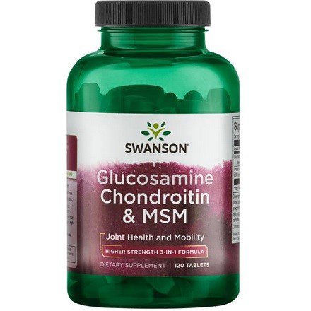 SWANSON Glukozamina/Chondroityna/MSM to suplement diety, który zawiera w swoim składzie związki organiczne wpływające pozytywnie na pracę oraz ochronę naszych stawów. Glukozamina i chondoityna budują wspólnie chrząstkę stawową w organizmie człowieka. Odpowiadają za tworzenie się mazi, która zapewnia poślizg dla ruchomych części stawów. Przyjmowanie suplementów diety z tymi substancjami jest istotne dla osób, które cierpią na ich niedobory w związku ze zwiększoną aktywnością fizyczną, w wyniku powstawania urazów oraz chorób stawów.