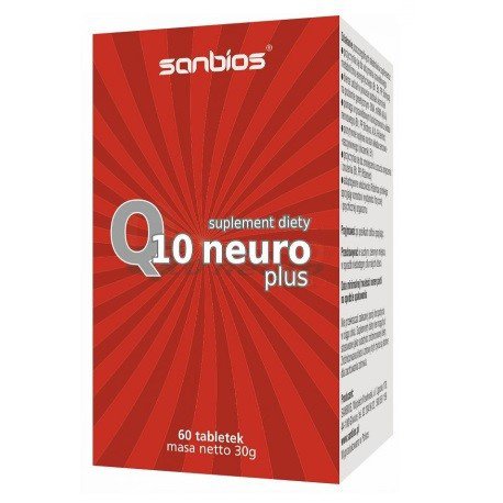 SANBIOS Q10 Neuro Plus to suplement diety w tabletkach, który posiada w swoim składzie Koenzym Q10 – organiczny związek chemiczny odpowiadający za prawidłowe funkcjonowanie komórek naszego organizmu oraz najważniejszych organów. Oprócz tego znajdziemy w nim kwas alfa-lipnowy (ALA), ekstrakt z różeńca górskiego, okrzemki, niacynę (Amid kwasu nikotynowego) oraz witaminę B2, B1 i biotynę. Jest to więc specjalnie przygotowany kompleks, wspierający funkcjonowanie naszego metabolizmu, układu nerwowego, sercowo-naczyniowego