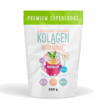 Kwas askorbinowy odgrywa dla kolagenu istotną rolę. Witamina C musi być obecna podczas procesu syntezy kolagenu. Stymuluje ten proces oraz sprawia, że zachodzi on prawidłowo, w wyniku czego powstała cząsteczka kolagenu ma odpowiednią budowę. Dzięki temu witamina C przyczynia się do zachodzenia wyżej wymienionych funkcji w naszym organizmie. W dodatku witamina C sama w sobie wpływa pozytywnie na wygląd naszej skóry, m.in. chroniąc nasze komórki przed stresem oksydacyjnym.