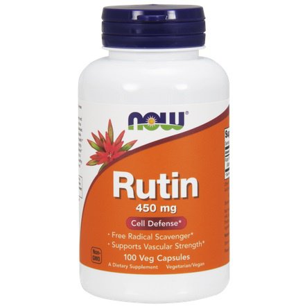 Suplement diety NOW Rutin (Rutyna) 450mg w wegetariańskich kapsułkach zawierająca rutynę w proszku. Rutyna jest bioflawonoidem, który wyzuje właściwości silnie przeciwutleniające, przez co wspiera układ sercowo-naczyniowy, opóźnia proces starzenia, wspiera i chroni DNA. Warto zaznaczyć, że rutyna wspiera układ immunologiczny i przyspiesza odpowiedź organizmu w razie infekcji. Mówi się, że rutyna może mieć wszechstronne zastosowanie w organizmie człowieka. Warto stosować ją profilaktycznie jak również w chwilach wystąpieniem zaburzeń funkcjonowania organizmu.