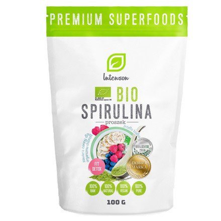 Czy wiesz, że spirulina jako superfood jest znana na całym świecie? INTENSON Spirulina w proszku BIO 100g w postaci proszku ma czystą i prostą formułę. Japończycy znani ze swojej długowieczności często stosują spirulinę w codziennej diecie. Spirulina to alga, której podstawowym budulcem jest białko, które stanowi aż 60% jej masy. Zawiera go 4 razy więcej niż taka sama ilość mięsa, dlatego jest szczególnie polecana dla wegetarian. Ponadto, jest źródłem chlorofilu. Bio spirulina jest produktem ekologicznym pochodzącym z gospodarstwa ekologicznego, w którym nie używa się środków chemicznych.