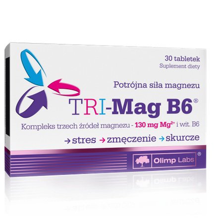 TRI-Mag B6 Firmy OLIMP zawiera w swym składzie trzy formy magnezu wsparte witaminą B6!