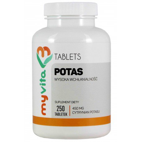 Cytrynian potasu jest jedną z najlepiej przyswajalnych postaci potasu dla organizmu człowieka. Firma MYVITA poleca suplement diety Potas (cytrynian) 450mg właśnie w takiej postaci. Potas jest jednym z najistotniejszych minerałów, bierze udział w utrzymaniu równowagi wodno-elektrolitowej, reguluje ciśnienie krwi, wpływa pozytywnie na funkcjonowanie układu nerwowego czy pracę mięśni.