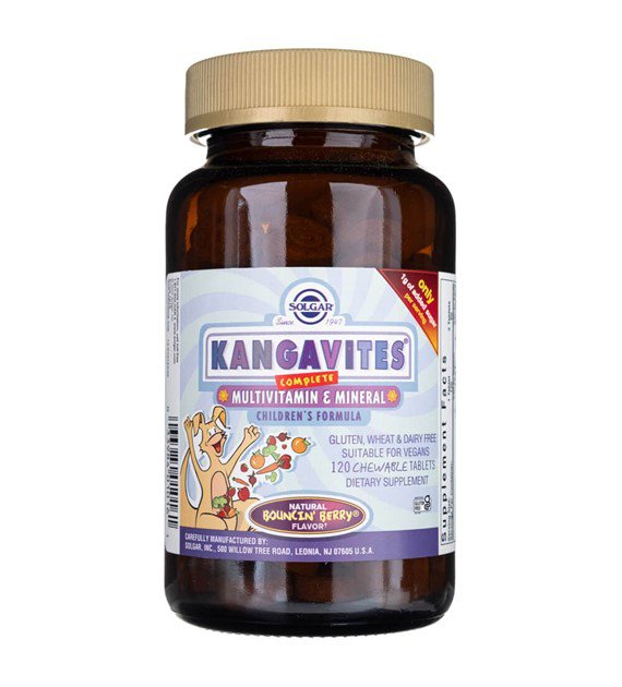 Opakowanie Kangavites witaminy dla dzieci zawiera 120 pastylek o przepysznym smaku jagód. Warto zaznaczyć, że preparat można polecić weganom i wegetarianom. Nie zawiera on także glutenu. Jego formuła jest czysta i prosta, dlatego też nie zawiera, zbędnych barwników, konserwantów czy innych substancji wypełniających. Firma Solgar poleca wysokiej jakości suplement diety Kangavites witaminy dla dzieci. Preparat ten zawiera nie tylko witaminy i minerały, ale także sproszkowane owoce i warzywa takie jak: czerwone buraki, marchewka, truskawki, jabłko, brokuły, morele. Suplement diety ma pyszny jagodowy smak, a pastylki do ssania można podać dzieciom już od 3 roku życia. Warto wspomóc codzienną dietę dziecka Kangavites witaminy dla dzieci firmy Solgar szczególnie w okresie przejściowym, takim jak przesilenie wiosenne czy jesienne, kiedy organizm dziecka może potrzebować wsparcia.