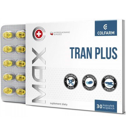 Max Tran Plus zawiera standaryzowany na zawartość skwalenu i alkilogliceroli olej z wątroby rekina oraz witaminy A,D,E.