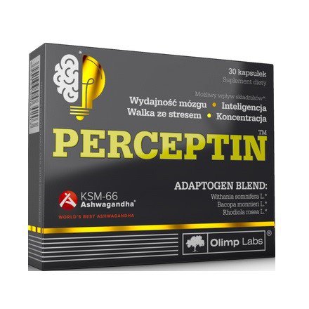 Produkt polskiej marki OLIMP Perceptin to innowacyjne połączenie standaryzowanych ekstraktów z korzenia ashwagandhy KSM-66, bakopy drobnolistnej oraz różeńca górskiego. Suplement diety polecany jest dla osób pracujących umysłowo, seniorów osób narażonych na stres czy szybki i nieregularny styl życia. Eksperci OLIMP stworzyli recepturę, która: wspiera pamięć, logiczne myślenie, koncentrację, zwiększa adaptację organizmu do czynników stresogennych czy wspiera pracę mózgu. OLIMP Perceptin to także wsparcie życia intymnego oraz metabolizmu energetycznego.