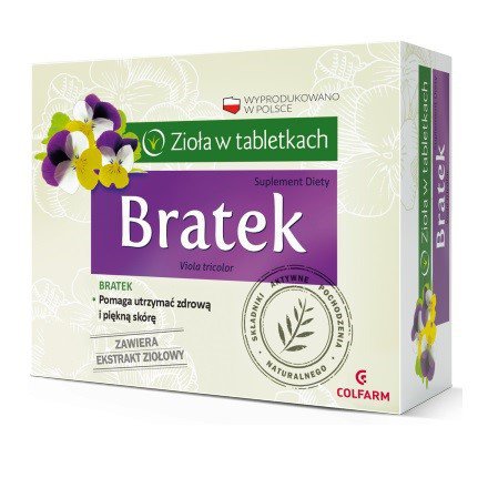 Czy wiesz, że bratek - fiołek trójbarwny jest ziołem, które jest znane w medycynie ludowej i naturalnej od wielu lat. COLFARM Bratek polecić można ludziom z problemami skórnymi takimi jak trądzik. Warto podkreślić, że choć bratek jest kojarzony przede wszystkim z wsparcia leczenia trądziku, ma on wiele prozdrowotnych właściwości. Za co ceni się COLFARM Bratek? Fiołek trójbarwny może wspierać aktywny proces odchudzania, naturalny detoks organizmu, zdrowie układu sercowo-naczyniowego czy wsparcie profilaktyki antynowotworowej.